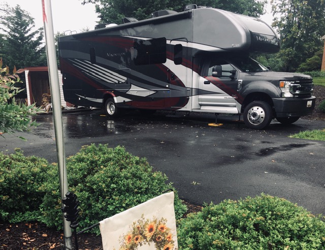 We began our adventure in the rain. We had blinding downpours as we headed west through Maryland. The rain was pounding, making lots of racket but above that din we heard another loud rattle. I thought perhaps a cabinet had come open, and was slamming open and shut. It was not quite that simple.