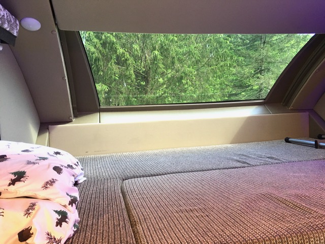 We have this really great feature in the bunk above the cab. There is an awesome retractable window that allows you to gaze at the stars while you drift off to sleep. At least it is awesome when it is on the track, and not working its way loose. The retractable cover was dangling off the track, right above the driver’s seat. It was bouncing, bumping and barely hanging onto the track, threatening to decapitate me. My poor husband had to crawl up there and jam the thing back in. It was not perfect but it stayed in place until we could properly address it at our destination.
