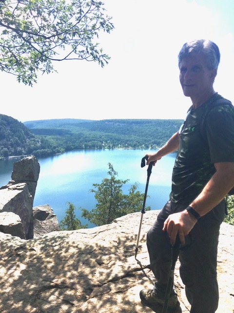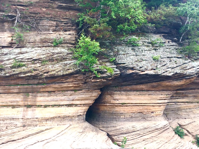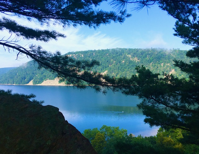 After a day of being “Griswold” vacationers, and visiting the top tourist attractions, we needed to get back on our feet. It was time to explore the bluffs and to hike around the lake. If you have been following along, you know that I am still nursing a badly sprained ankle back to health. This was going to be a true test, as the trail included lots of rock and several elevation changes. I tightly laced up my hiking boots, grabbed my hiking poles and moved onward. It was slow going, as I was uber-aware of every footfall. I did take one, minor tumble when my boot became wedged under a crag. I sat for a moment, realized that there was no snap, crackle or pop of the already strained ligament, and thankfully, stood up without pain. I passed the test. I did not get an A+ but I was happy to get a passing grade.
