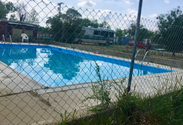 I’m not sure whether the charm was due to the cramped quarters, the ramshackle buildings, the weedy pool with piles of dog poo around it, or the 1960’s signage but I did find this quirky, little campsite to be strangely engaging. We had full hook ups, including 50-amp service, and the owner was just as friendly and helpful as a person could be.