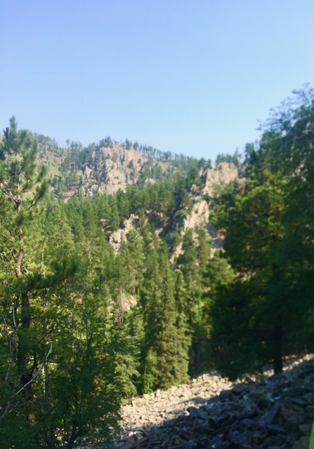 Enter, South Dakota. The hills turn into mountains, and you start seeing signs that say, STEEP, CURVY ROADS WITH NO SHOULDER FOR THE NEXT SIX MILES. Those high-elevation, serpentine roads are agonizing. I wanted to pull over and cry, but there was no shoulder to pull on to, so I had to wind my way around, VERY slowly, while simultaneously cursing under my breath and begging Jesus to take the wheel.