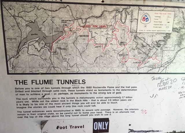 We took a perfectly healthy (and really expensive) puppy for a hike in the Black Hills. The Flume Trail goes along the route of a flume that was constructed in the late 1800s for the purpose of redirecting water to areas in which gold had been discovered and was being mined.