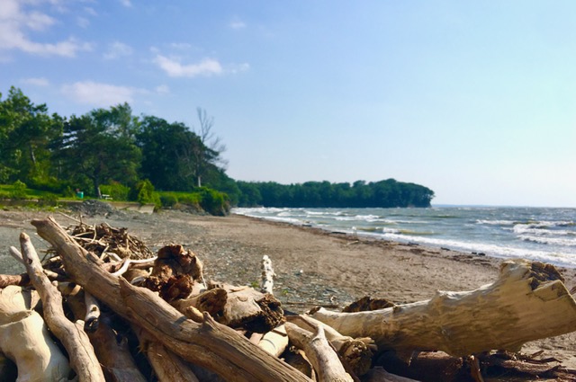 This may come as a shock, but after 6,200 miles behind the wheel, I relented. I allowed myself to be a passenger. A major storm was fast approaching as we passed through Erie, PA and were heading on to Western New York. I could not fathom driving one mile further, especially through black skies, blustery winds and a blinding rain. I had already gone too many miles. It was the straw that finally broke the camel’s (my) back. I pulled over, pried my fingers off of the steering wheel and got situated in the back of the RV. Only intravenous valium could have persuaded me to ride shotgun. There would be no co-pilot for this leg of the trip. Once safely seat-belted in the back, I grabbed my comfort animal (Gypsy) and gave the keys to my husband. He picked his jaw up off the ground, introduced himself to the driver’s seat, and got us safely to Evangola State Park in Irving New York.