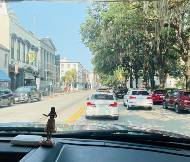 When we departed Tybee Island, we did not expect to drive the motorhome through old, downtown, Savannah. These historic towns have streets that were designed for horse-drawn carriages, not behemoth busses. We should have asked our GPS to stick to the highways, but hindsight, as they say, is 20-20. We managed to squeeze through town unscathed, making it to Jekyll Island without incident.