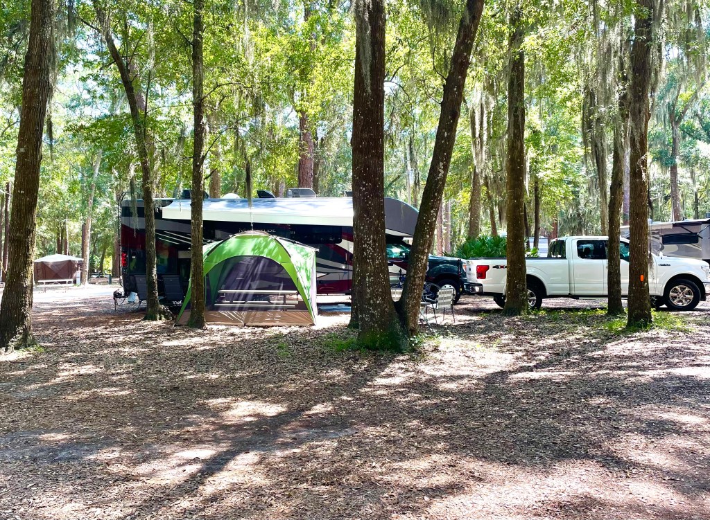 Jekyll Island State Park is on the north end of the island. The camping area is heavily treed and shrouded with Spanish Moss. It is spotless, quiet, and has surprisingly few mosquitoes.