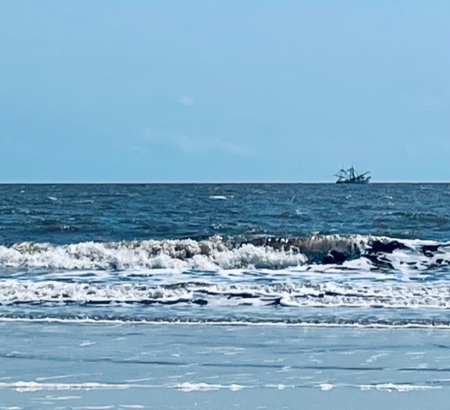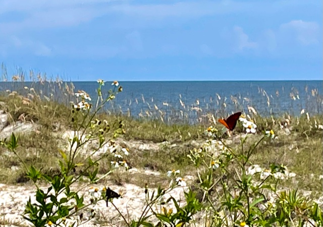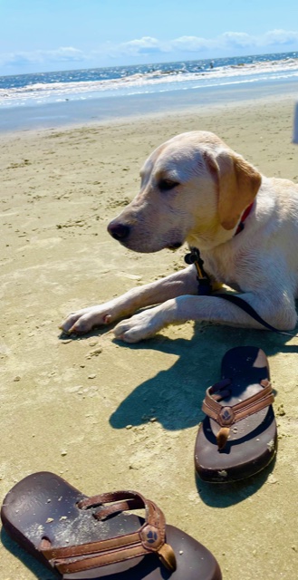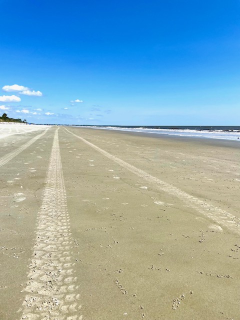 The island is roughly 7.5 miles in length and the optimal mode of transportation is bicycle. There are bike paths that circle the entire island. The trails take you along the ocean front, through the marshlands, and to the various points of interest. Motorized vehicles are allowed but many opt to ride bikes or rent golf carts. It is at this point that I give a plug to Red Bug Motors Golf Cart Rentals. I was running on the trail one morning, with Gypsy. We do not run together like a well-oiled machine. Sometimes I drag her, and sometimes she drags me. She was panting like crazy and I noticed a cooler on the porch of Red Bug Motors. I planned to buy some water and beg for a cup so that my incorrigible running partner could have a drink. The gentlemen at the rental store invited Gypsy in, filled up a dog bowl with fresh water and gave her a dog biscuit. Rich, who may have been the owner, even invited her to come back, to run around the fenced airport, which is directly behind his store! Now, that’s good, old Southern hospitality.