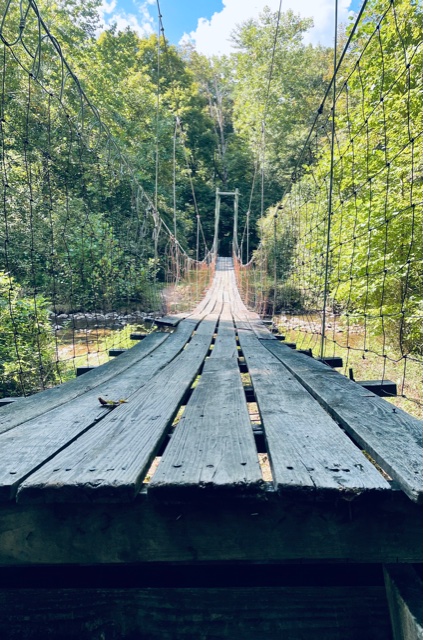 Douthat, located in the Allegany Highlands, has four separate campgrounds, one of which caters to equestrian campers. The park has over forty miles of hiking trials, most with elevation changes that lead you to scenic summits and stunning vistas. The trails are well marked, challenging but not difficult, and we stumbled upon a rustic, swinging bridge that was fun to traverse.