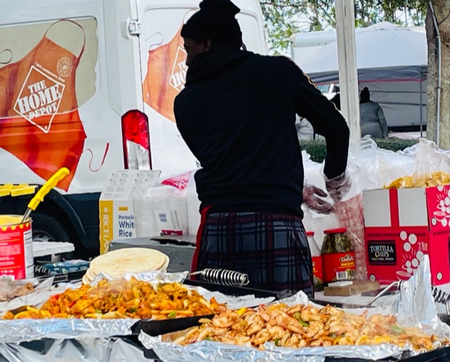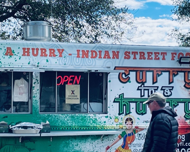 It was good to be outside, but winter wear was essential. It was too cold to hold a craft beer without gloves, so we did not sample as many as we would have liked to. I wanted to try something from the Curry-In-A-Hurry, Indian fare food truck. I sent my husband to make a selection while I held on to Gypsy. I was envisioning spicy, Saag Paneer. Instead, we wound up with Tandoori chicken tacos, which were interesting, but not exactly my idea of Indian cuisine.