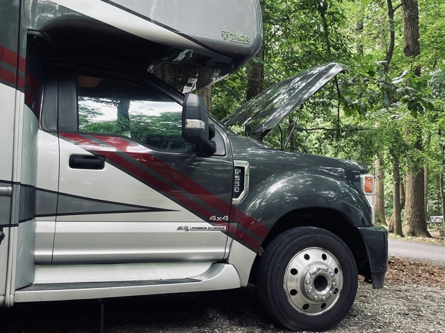 Saturday began with a quick trip to the grocery store in preparation for a long haul to Colorado. Provisions were packed away, the “stuff” inside the RV was secured for travel, the tanks were dumped, and the site was cleared. We were smiling, singing Willie Nelson’s On The Road Again, and ready for take off. Until we cranked the engine. It started right up, but the RV computer was not receiving the signal. Therefore, we could not close the slide out. Nor could we lift the leveling jacks. We were not going anywhere.