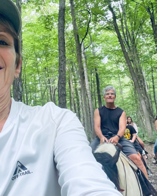 We are determined to keep moving forward, so we are, literally, back in the saddle again! We were able to cast away our woes long enough to enjoy a trail ride. “My” lead horse, Moe, which has to be short for molasses, was seasoned and SLOW. My husband’s steed was an enormous draft horse that plodded along behind “Slow Moe”, never trying to take the lead in spite of the lethargic pace.
