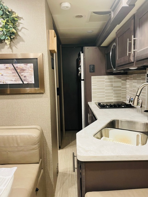 Without a functioning slide out, our motorhome has extremely narrow hallways, and a king-sized bed that cannot be extended. Being petite is finally a plus. If I were much bulkier, I would have to spray myself with Pam in order to slide down the hallway. You can barely open the refrigerator but I can squeeze my arms in enough to get most food items out. The fruit drawer, however, is impossible to open. I lie in bed at night, just imagining the stuff growing in there, most assuredly matter that should be on a petri dish.