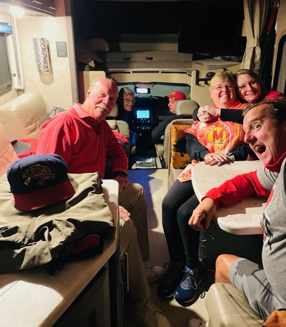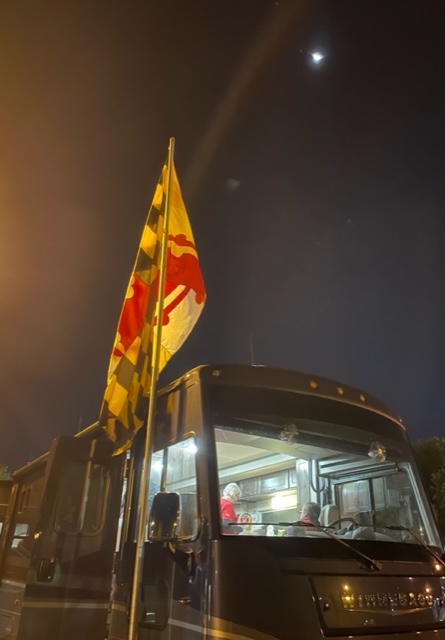 I do not deny that I was born to wander, but the thought of resuming a rambling lifestyle was far, far from my mind. It was too early to consider rolling down the road. I just got here! Yet, the reality was that, earlier in the year, we had made arrangements to take a bunch of friends to Ohio for a college football game. Yes, we were going to load Bertha with bevy of University of Maryland fans, and head to Ohio State’s legendary “shoe” for a Big-10 match-up on the gridiron. So, despite my RV-reluctance, we loaded up the bus with tailgate supplies and Terps supporters, and headed down the highway.