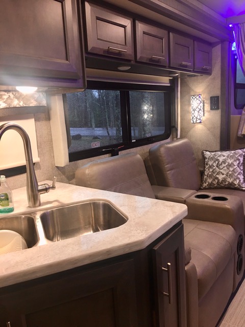 I think I need to explain my fear of gas stations. Our rig, complete with tow bars and tow vehicle is probably about 55 feet long. Not all gas stations have easily accessible diesel pumps and a whole lot of them do not have enough real estate to allow wide turns. Furthermore, our tow system does not allow you to back up. Not one inch. Not one centimeter. If you find yourself unhappily crammed between an island of pumps and a storefront, you are stuck. If there is no room to move forward, and your towing situation prohibits backing up, you have to disconnect your RV from your tow vehicle. I imagine it is not easy to do when truckers are sniggering, horns are blaring and everyone is pointing at you. This has not happened but it is a nearly debilitating fear for me. Because I envision this scenario every time we need gas, our fuel stops are rated R for profanity. My husband is yelling “RIGHT”, “NOW”, “SPEED UP”, “LEFT”, “TOO LATE” and I am grinding the enamel off of my teeth while trying to maneuver through a petroleum themed maze. It’s unpleasant.