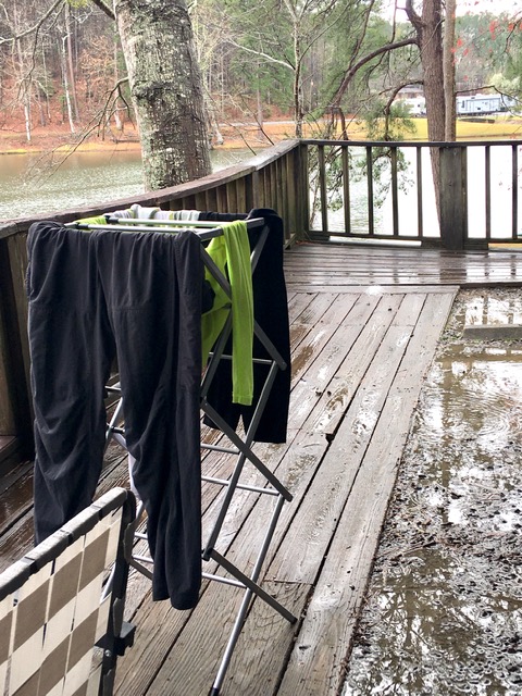 On the good news front. The wrench symbol on the dashboard has gone away, and I got a HOT shower. I played around with the stove to make sure that the propane was flowing, and VOILA, the on demand water heater ignited. After all of this rain, you would not think that water would make me happy, but HOT water makes me giddy.