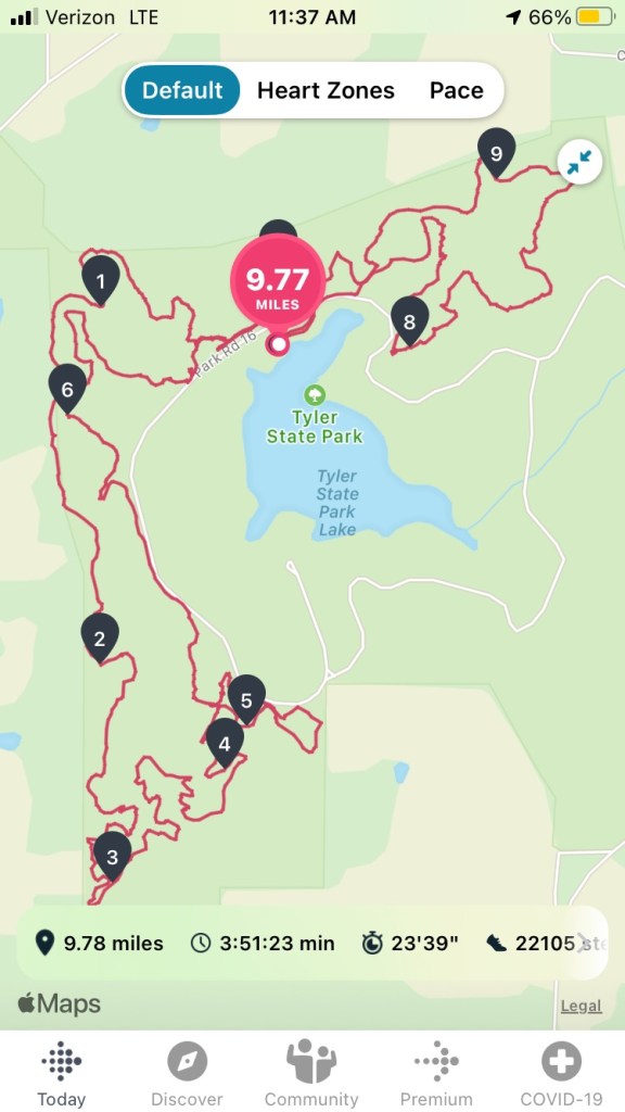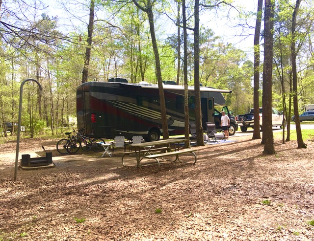 We made it to Tyler State Park! The sites are enormous and there is a promise of good weather for tomorrow BUT we have to make it through the severe storms that are forecast for this evening. We will hunker down, say our prayers and hopefully, wake up nice and dry in the morning.