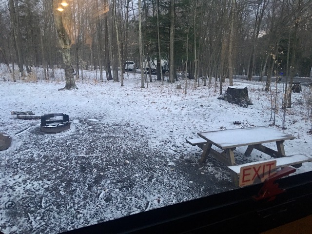 Then the snow came. There was not much, but it was enough to turn the parking lots into a frost covered nightmare. Enough to cause panic about icy roads and skiing sideways, out of control, over the mountains, in an RV.