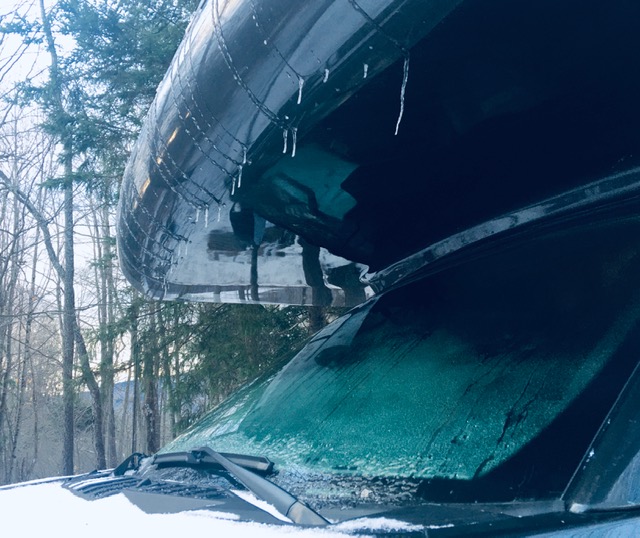 The driver’s side door of the tow vehicle had not been completely shut during the night. I crawled in and sat on a cold, frosty seat. With a wet, cold posterior, I followed the RV to a spot where we could hook up the truck to the tow bars. There was a constant beeping coming from the truck and a dashboard display that said DOOR AJAR. Upon further inspection, I discovered that the mechanism that keeps the door closed, was frozen solid. After running the heat at full blast for 10 minutes, and thinking that we may never get back on the road, the door finally thawed and thankfully closed.