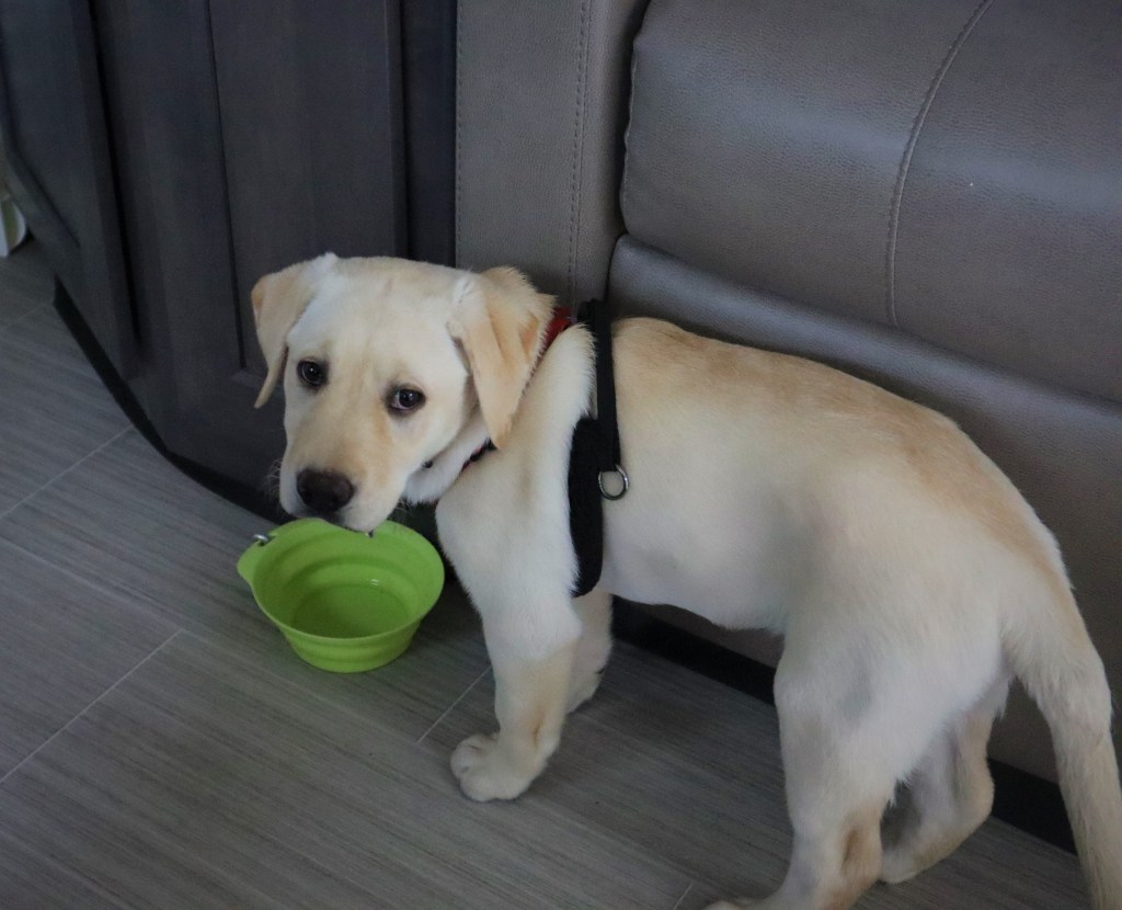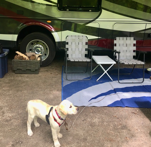 I’m a mom, a step-mom, and a grand-mom. Now, I am a DOG-MOM. My ‘dog-ter’ is an 11-week old Labrador, aptly named Gypsy because she is being raised to be a nomad. I have visions of a loving, cooperative, camping companion. I harbor fantasies of an obedient, spirited hiking hound. We are working on it but I have to become more pragmatic about my expectations. Let’s just say we have a long way to go.