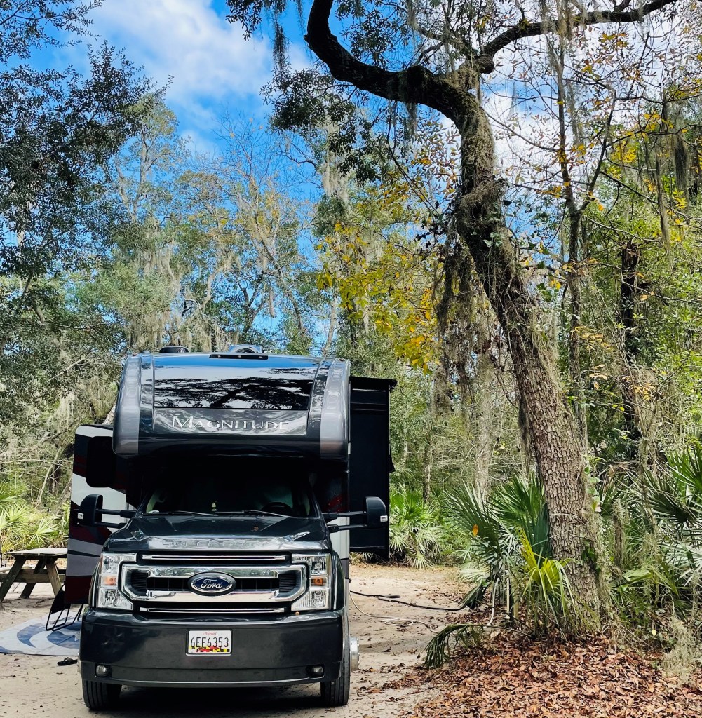 If you manage to evade the reptiles, there are also mammals that could pose a potential threat. Our recent campsites have all posted information about the elevated activity of black bear. Although Big Bertha has given us multiple headaches, I am thankful for the protective armor of an RV. I don’t think I could comfortably sleep in a tent with bear, gators, rattlers, and panthers roaming about.
