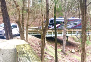 We speculate that this is an Army Corp of Engineers marvel. I am dumbstruck at the construction of these ‘parking porches’ and am praying that the structural integrity outweighs Big Bertha’s tonnage.